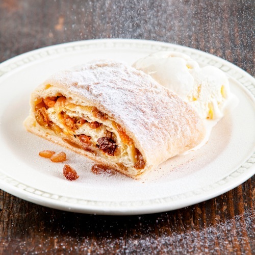 In realtà anche se la leggenda vuole che lo strudel sia un dolce austriaco, questo dolce ha origini turche. Si tratta dell’evoluzione della cosiddetta “baclava”, un dolce turco ripieno di frutta secca e spezie. Arrivò in Europa (in Ungheria e per conseguenze storiche in Austria e in Trentino) in seguito all’invasione ottomana del XVI secolo. La ricetta dello strudel di noci è molto simile a quella classica, ma anziché esserci le mele, per il ripieno vengono utilizzate le noci e l’uvetta. Per quanto riguarda la pasta invece l’impasto è più morbido per la presenza del latte.